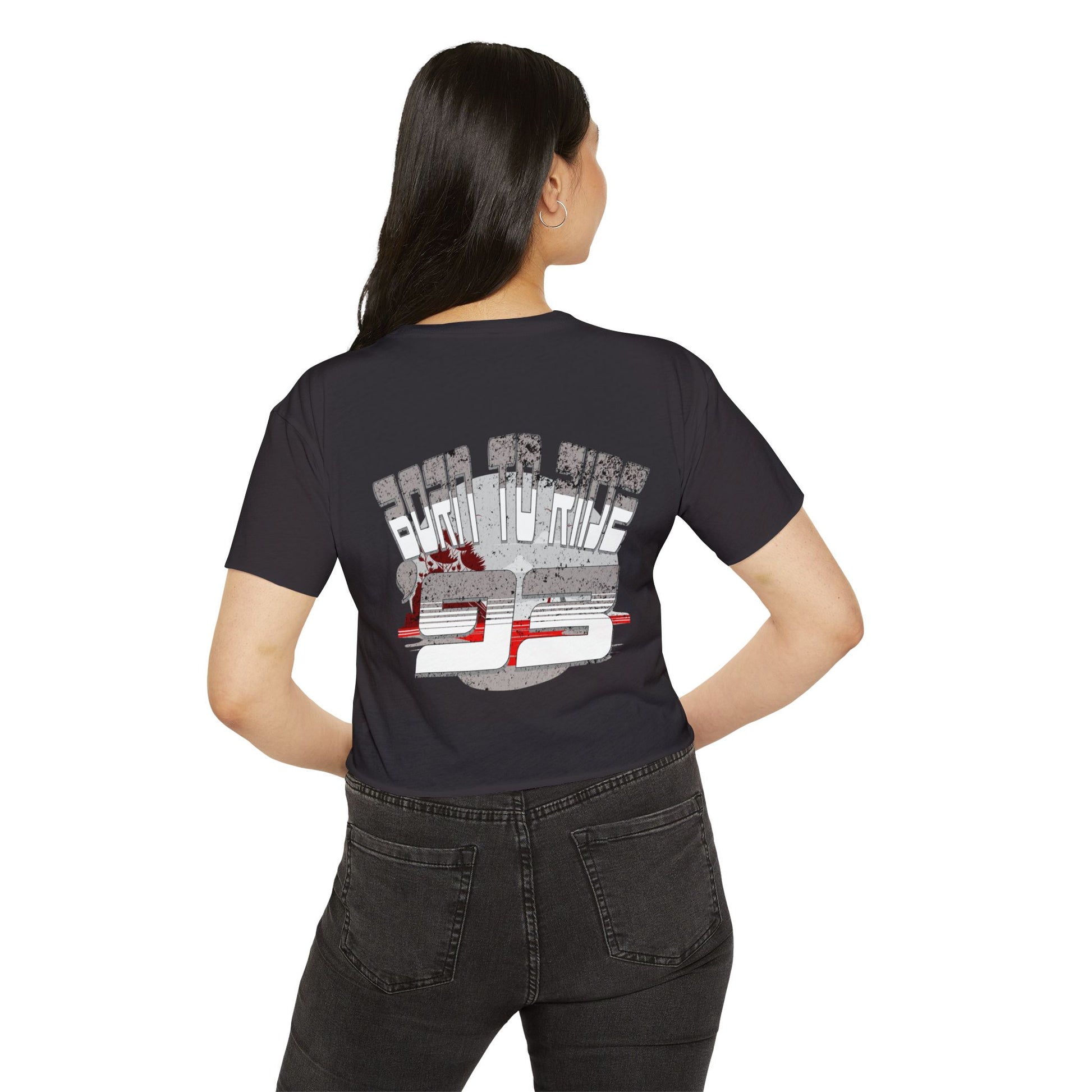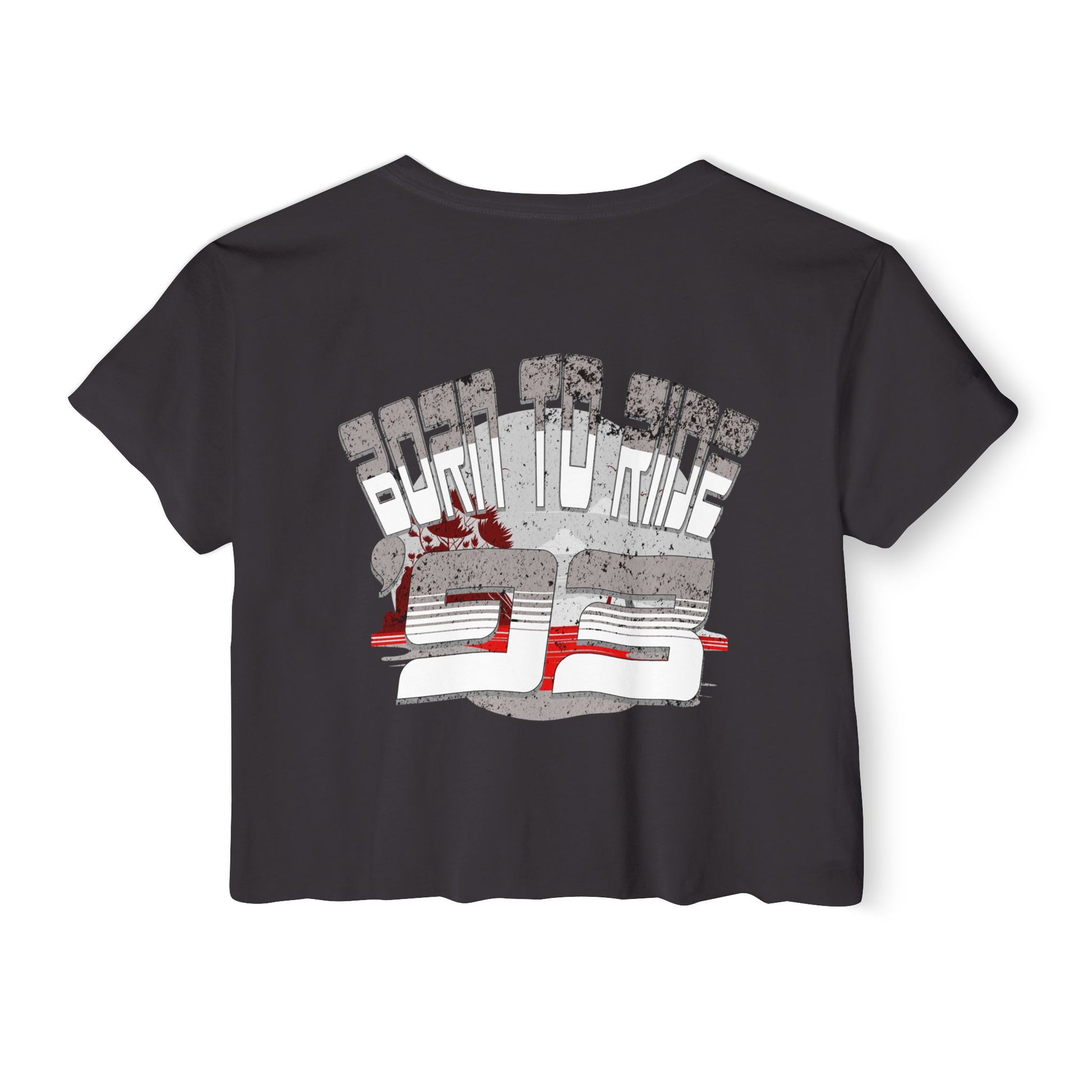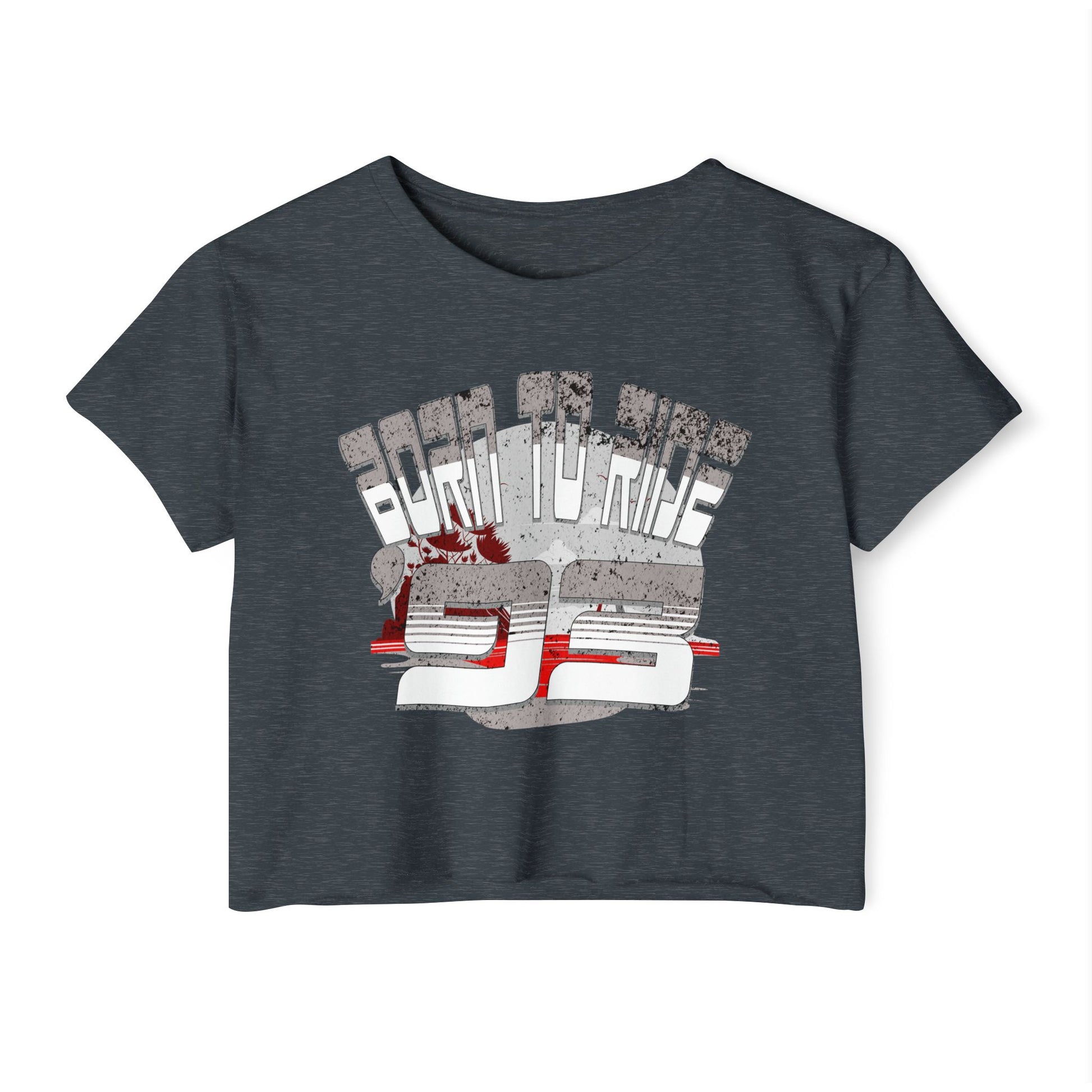 Born to Ride '93 in Monochrome Crop Top Graphic Tee, Summer Music Festival Shirt, Boho Style Top, Women’s Concert Wear, Casual Summer Top