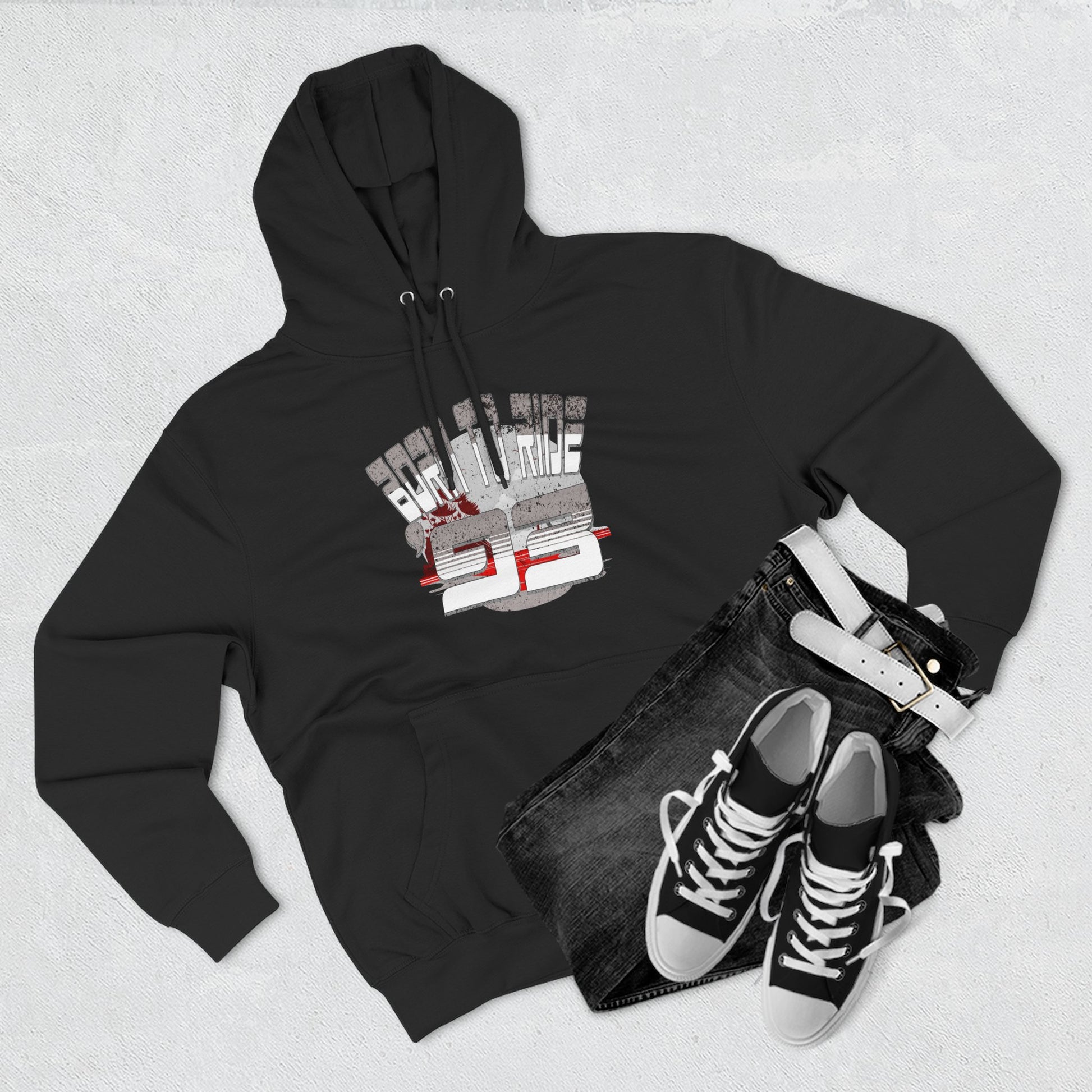 Born to Ride '93 in Monochrome Fleece Hoodie, Born to Ride Cozy Sweatshirt, Biker Gift, Unisex Casual Wear, Vintage Style Hoodie